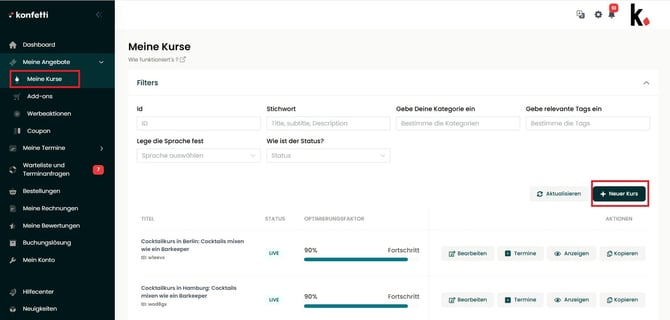 👉 Meine Angebote → Meine Kurse → Neuen Kurs hinzufügen