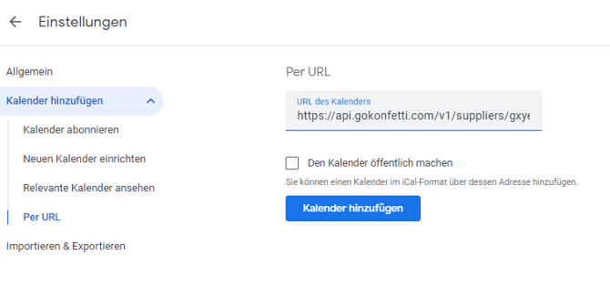 - Gehe in die Einstellungen auf „Kalender hinzufügen" und „Per URL“