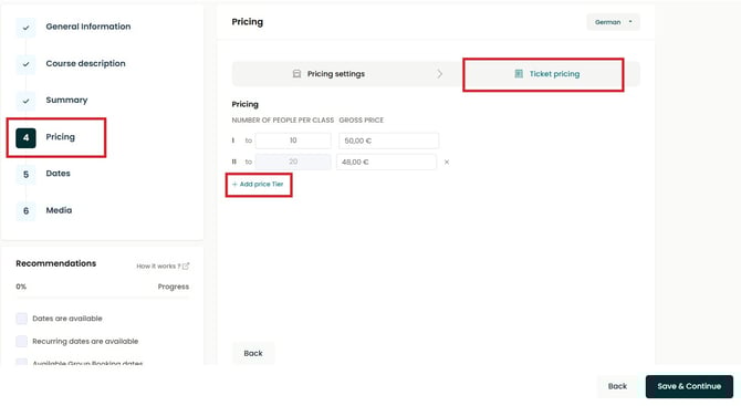 You can now set up tiered pricing for your events! This allows you to flexibly adjust the price per person depending on the number of participants.